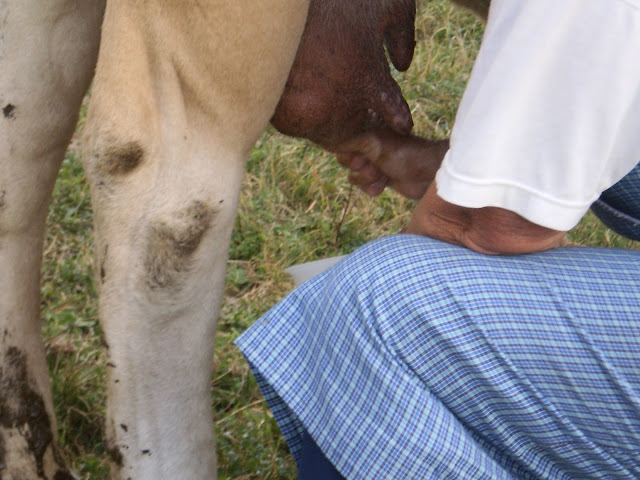Un día observé atónita unas manos femeninas que muñían una vaca y dejaban que la leche cayera al suelo. Esto se hacía puesto que se había destetado al xato,  y,  con el objetivo de descargar la ubre para que la vaca no cogiese mamitis. De ese modo unos dos litros de leche de aquella vaca, iban al suelo cada día.